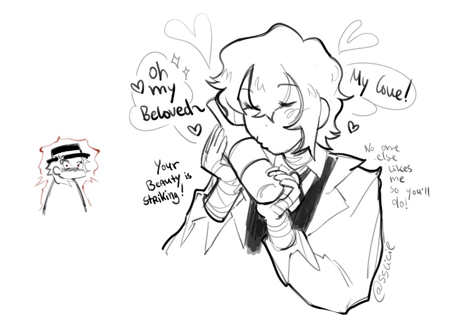 Woah fem skk!!! (Got this idea from a mutual of mine teehe giggles) #soukoku #bsd #femdazai #femchuuya #bungostraydogs