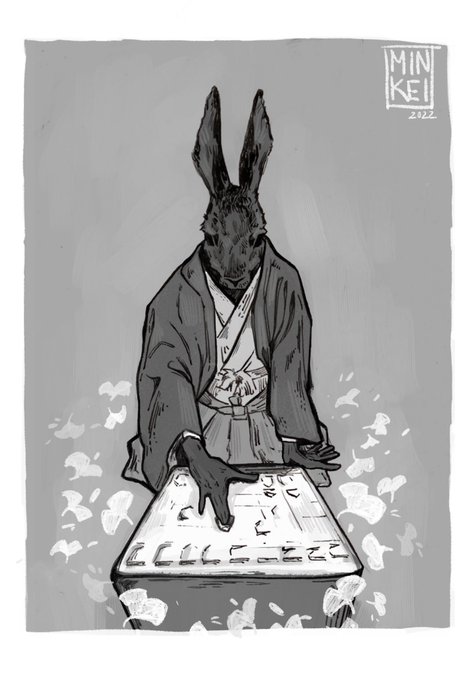 [ #Badtober2022 Day 1 - Gamer ] went for a shogi playing rabbit for this one 🌿✨ #inktober2022 #bunnytober