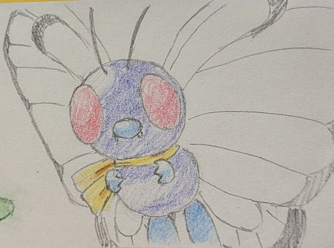 #カントー地方 No.012 #バタフリー #キョダイマックスバタフリー タイプ:むし🐛ひこう🪶 説明 ・こいつと言えば、「 #バイバイバタフリー 」が感動回で有名(多分) #ポケモン #アナログイラスト #模写 #Butterfree #イラスト #Pokemon