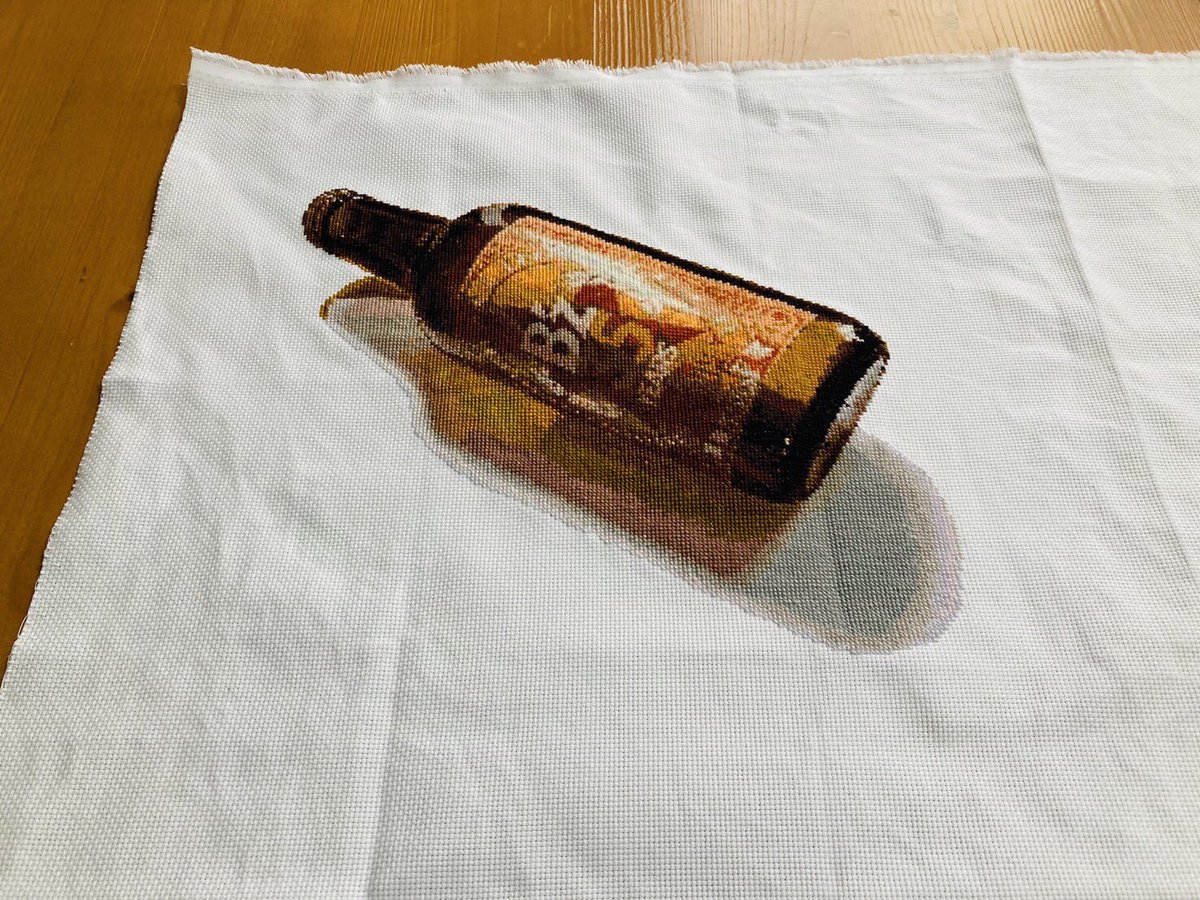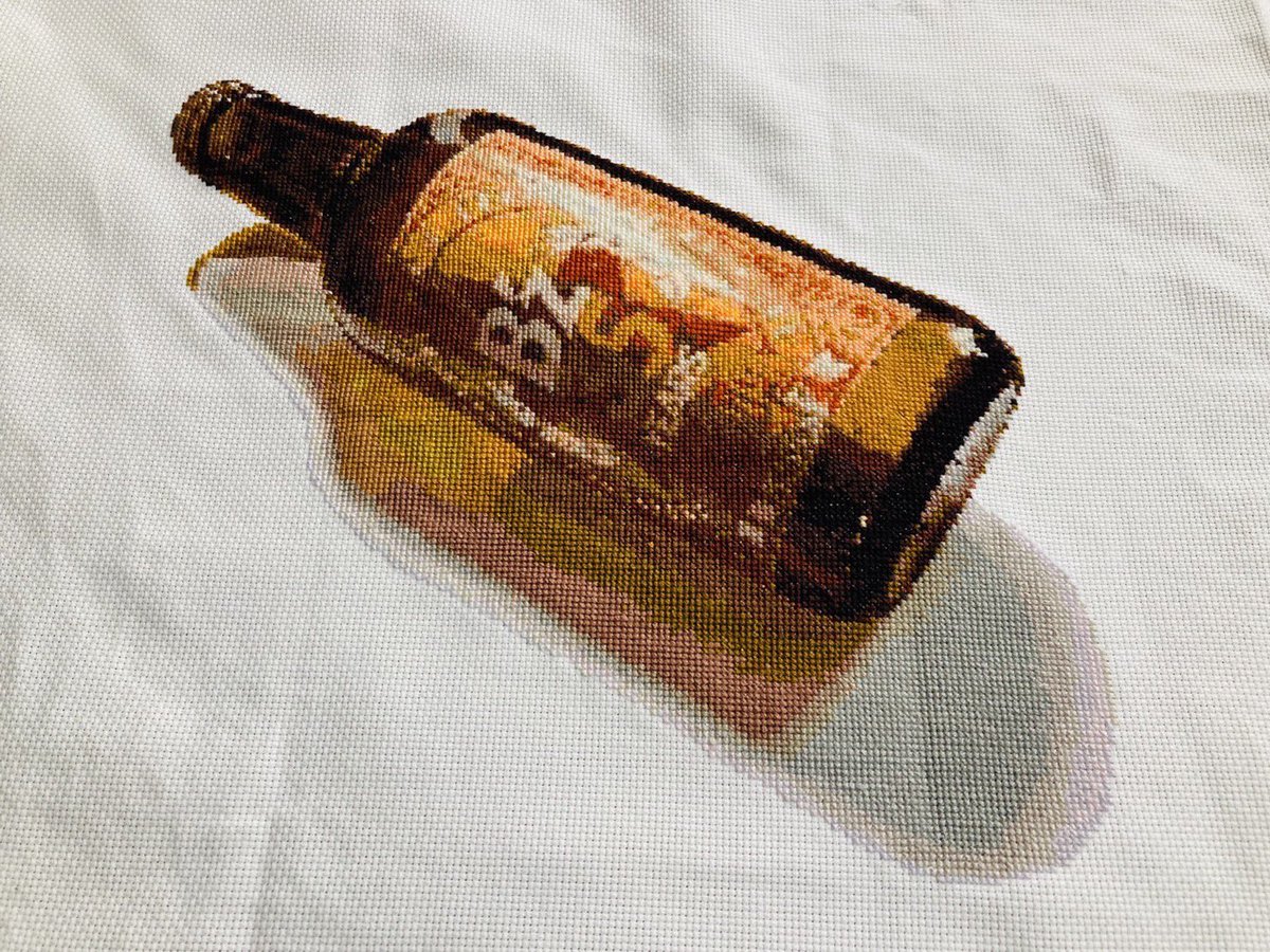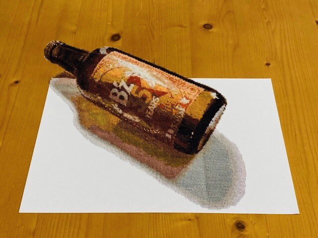 ビール瓶の立体トリックアート 完成しました🍺 #クロスステッチ #立体アート #クラフトビール #18ct #2本取り #図案変換ドットコム #Bz35th #BzLIVEGYMPleasure2023STARS
