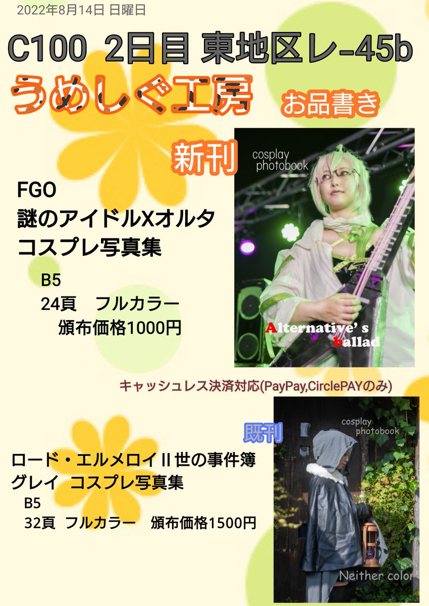 #C100カウントダウン もう5日前!? FGOアイドルえっちゃんのコス売り子しながらえっちゃんのコスプレ写真集を頒布します!!よろしくね🥳 twitter.com/comiket_air/st…