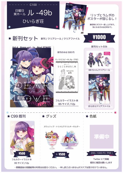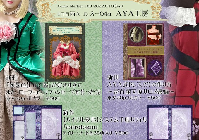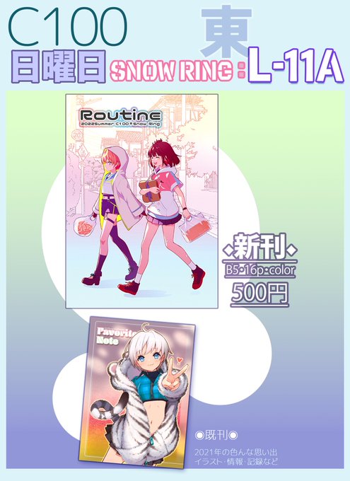 遅くなりましたが #C100告知 #C100 コミケの告知です! 新刊は半コピー本(表紙だけカラー印刷)、既刊とTシャツです。バンダナも在庫あれば持ってきます。 コミケ13日土曜日 東D-21a です。 皆様 #拡散希望RT協力お願いします