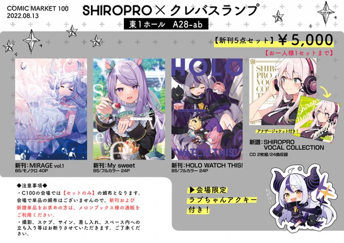 お待たせしました、しろぷろ×クレバスランプのC100コミケお品書きです~! 8月13日(土)東A-28abでお待ちしてます😊 ↓本はメロンブックス🍈さんで委託中!↓ melonbooks.co.jp/search/search.… #c100 #コミケ100 #laplus_great #ウマ娘 #しろぷろ #クレバスランプ #C100告知