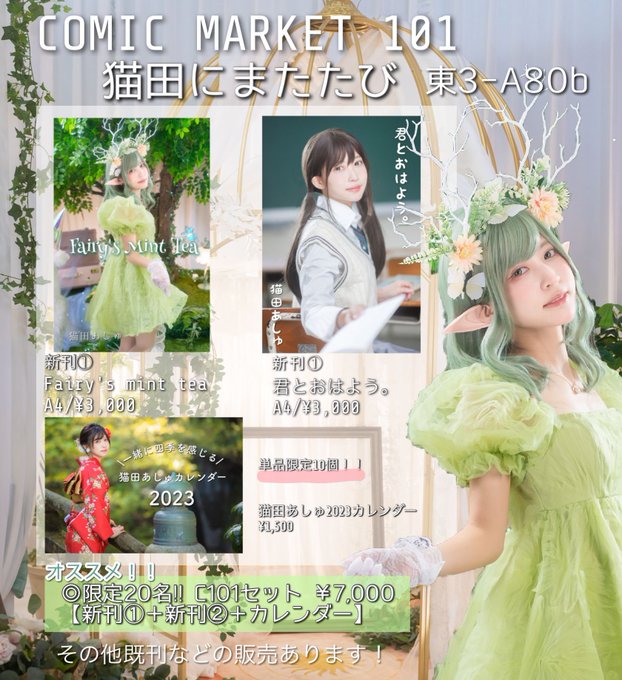 【 COMIC MARKET101 おしながき 】 今年も冬コミやってきましたね❄️ 新作2冊と数量限定カレンダー作りました🗓 12/31(土)午前のみ猫田在中します! サインご希望の方は午前中にお願いします🐈♡ 午後は犬田でしゅ@Inuta_Deshu に任せているので購入は可能です◎お待ちしてます🌱 #C101おしながき