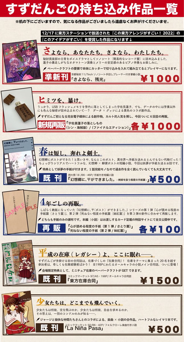 【告知】#C101 2日目西か01ab 荒御霊 × 梶迫小道具店(合体・合同会計) 梶迫小道具店新譜は荒御霊との合作「LEGIT GAME」 新作グッズのイベント頒布もあります。 荒御霊(@kouki_izumi )は新譜「BM15」も制作中! 寒い冬コミを熱くしてくんで、みんな拡散よろしくおねがいします🐹 #C101東方告知 twitter.com/cajiva/status/…