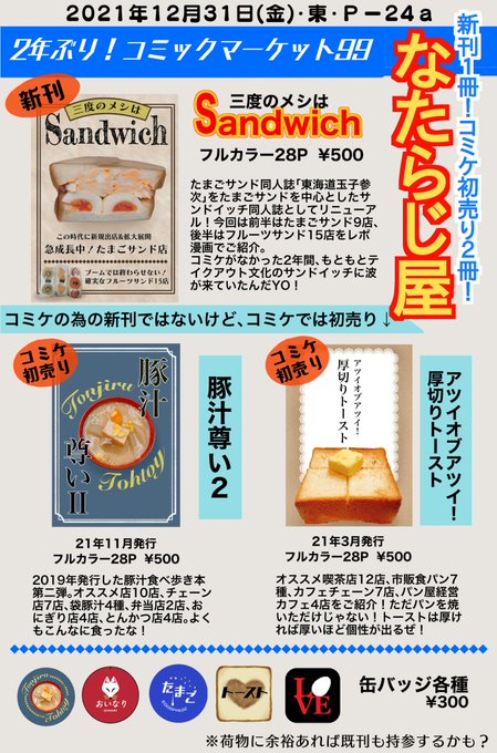 コミケ99のお品書きです! よろしければ拡散して下さい!あと当日よろしくお願いします!m(_ _)m #C99お品書き #C99告知 #RTで私を有名にしてください #絵柄好みって人にフォローされたい #創作クラスタさんと繋がりたい #私を布教して #絵描きさんと繋がりたい #拡散希望
