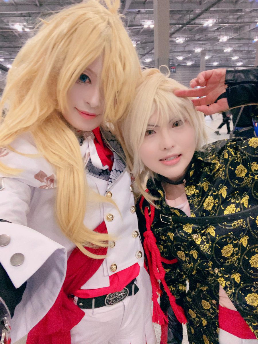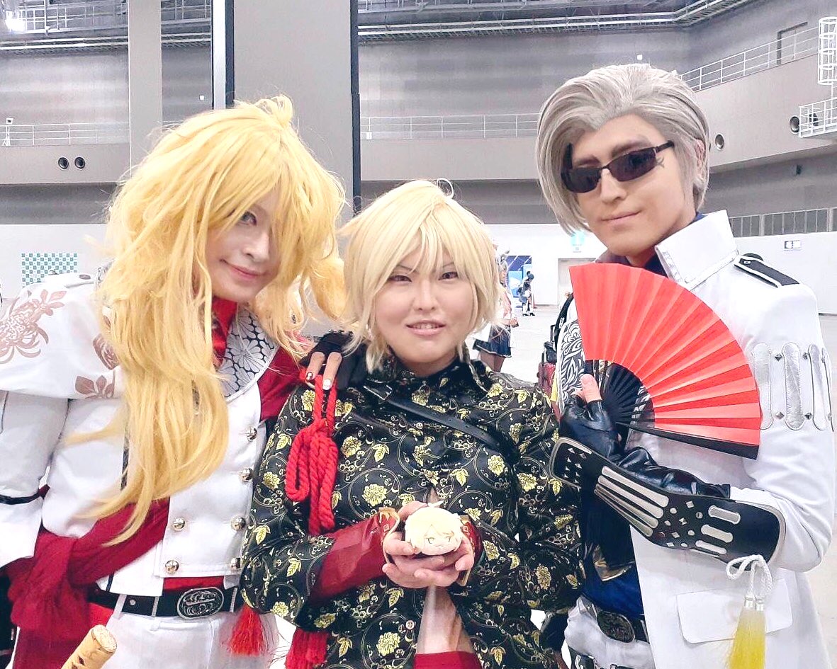 コミケで一文字あわせしてました 初出しで色々やらかしてましたが一緒に撮っていただきありがとうございました! 則宗 @smrinn_sdk さん 南泉 @oniwaka461 さん #コミケ99コスプレ #C99本丸