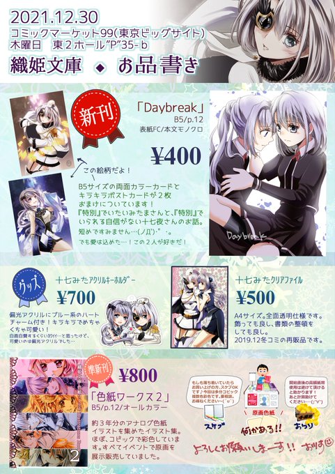30日(木)西つ06aハタイテください webcatalog-free.circle.ms/Circle/15718145 #C99WebCatalog 新刊告知遅くなりました。 フルカラー700円予定 後グッズとか持ってきます