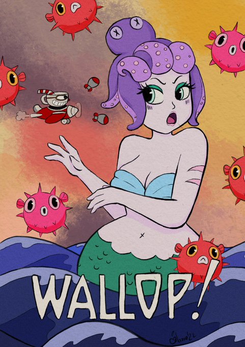 MerMay Post 1: Cala Maria, the number one sea beast! 🐙🐚💙 (This is NOT Cala Maria x Mugman art! Mugman simply has a precocious crush! ❤) #CupHead #Mugman #CalaMaria #ArtistOnTwitter