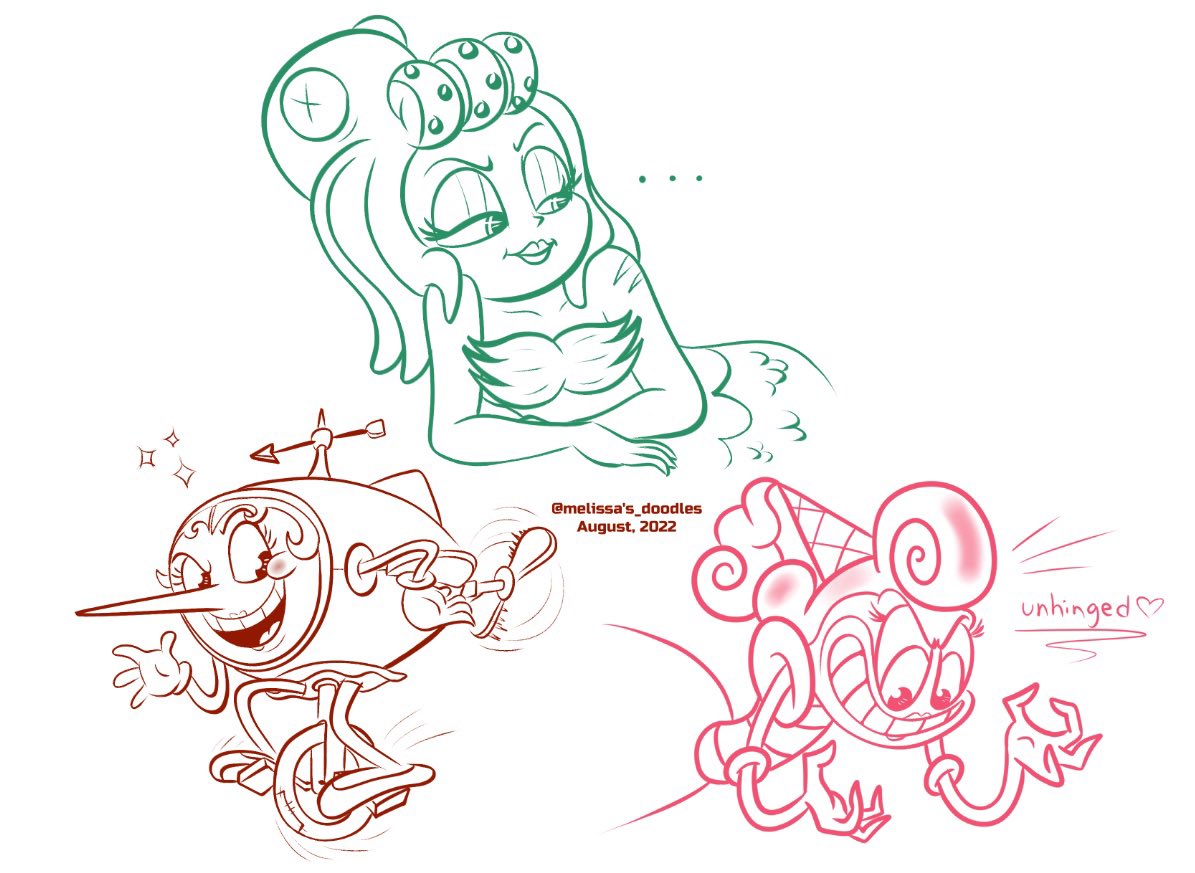 Looking forward to seeing these 3 bosses (along with many others) in the Cuphead Show soon!! 🌙🍭🧜🏼♀️ #Cuphead #TheCupheadShow #calamaria #hildaberg #baronessvonbonbon #cupheadfanart