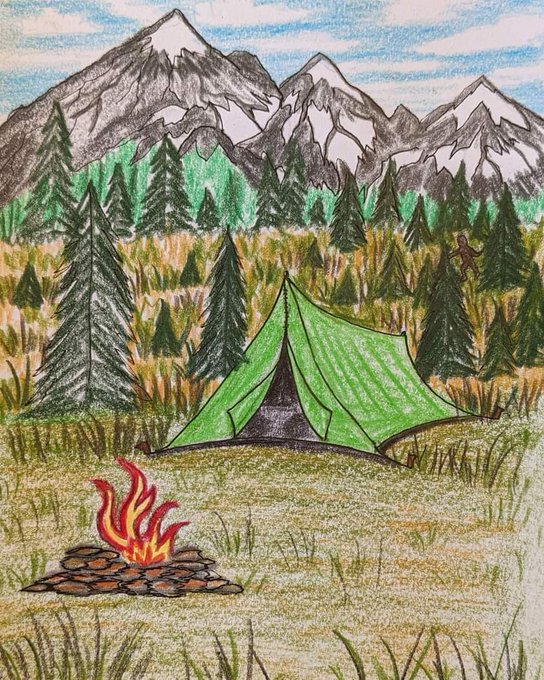 INKTOBER 2022- Day 28: camping #mattstarrfineart #inktober #inktober2022 #inkartist #inkdrawing #inkdraw #drawingart #drawingoftheday #drawing #draw #sketch #kansascity #sketchbook #camping #camp #camper #woods #mountain #campfire #sasquatch #bigfoot #yeti #tent #tents
