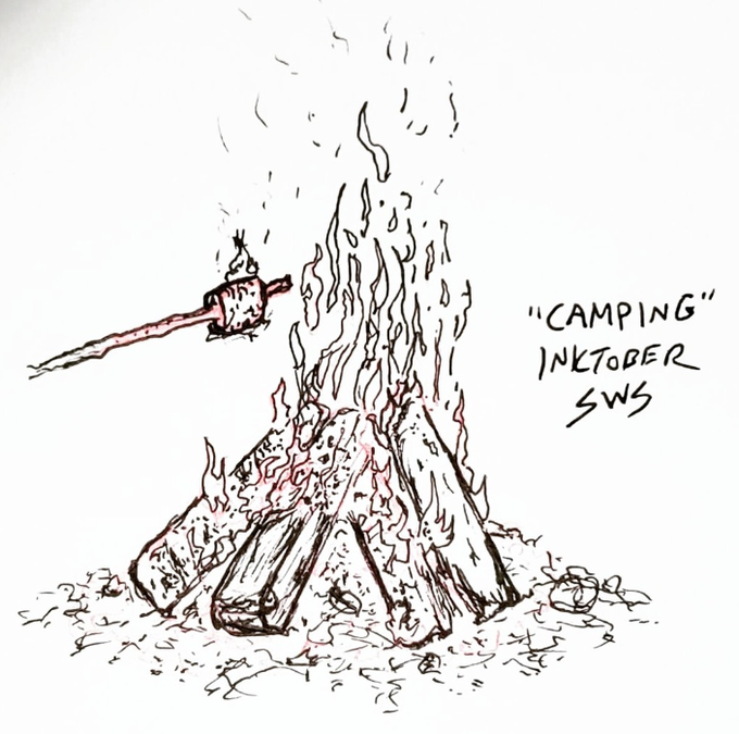 Inktober "Camping" #camping #campfire #inktober #inktober2022 #inktobercamping #drawing #inkdrawing @inktober
