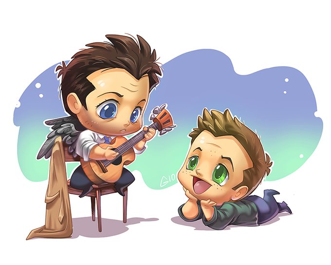 For #Fanartsunday I am working again in #pokemon and #supernatural fusions, but since I haven't finished the last batch, here's #Castiel again with his starter, a #Ribombee that stuck to him the second he got Jimmy as a vessel, and never, EVER, left.