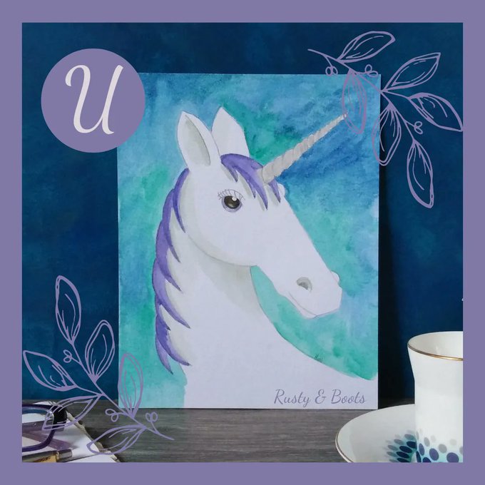 Alphabet Challenge day 21 U is for Unicorn 🦄 I'm in my element when painting mythical creatures. This one is spreading her magic in my shop buff.ly/3AFv8M2 #CCabc #MHHSBD #unicorns #mythology #fantasyart