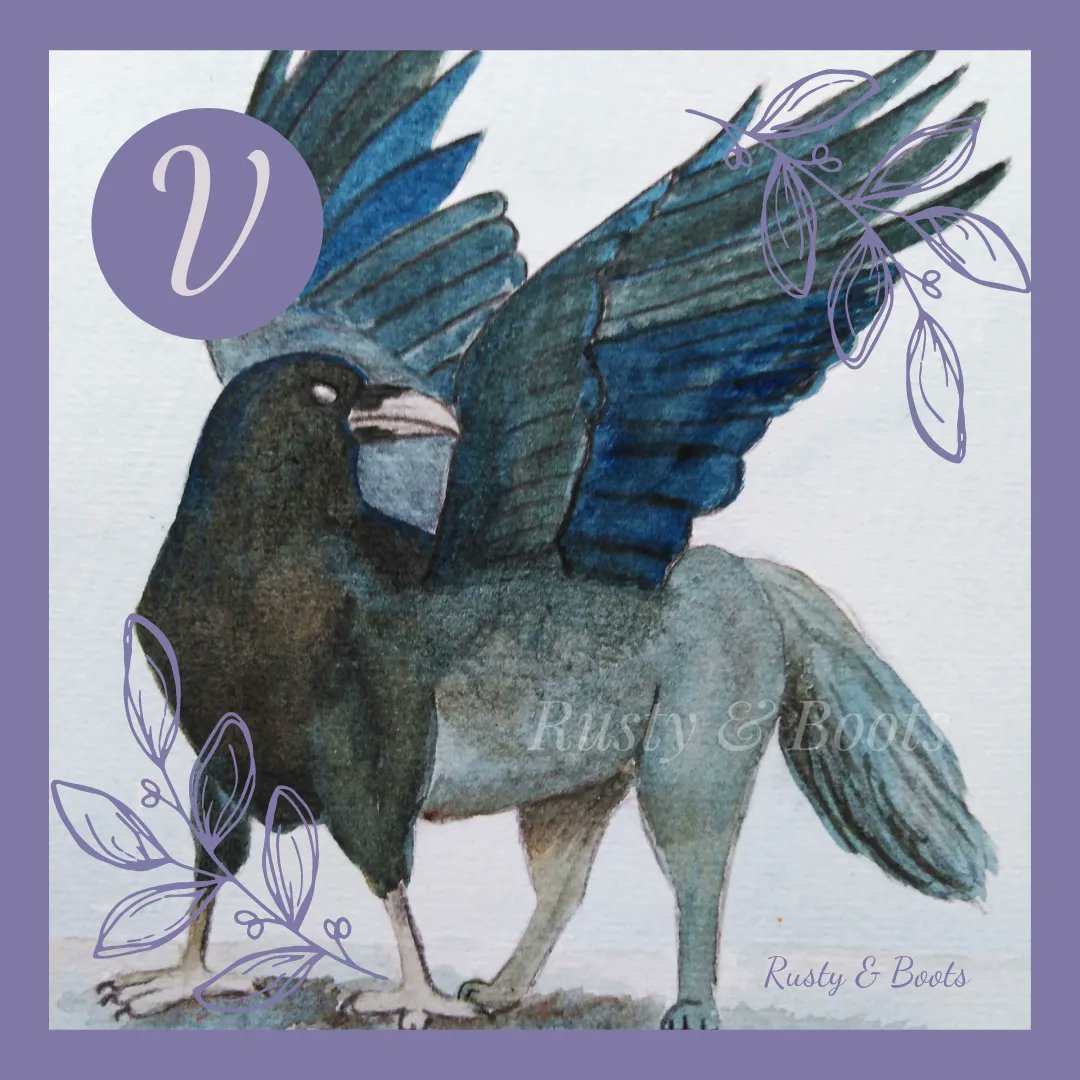 Alphabet Challenge day 22 V is for Valravn What do you mean you don't know what a Valravn is? 😉😄 It's a mythical animal, half raven, half wolf. I'm hoping to do another version of this soon. #CCabc #MHHSBD #mythology #animals #fantasyart