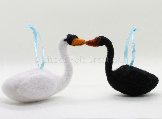 Day 19 of the April Alphabet Challenge. S is for . . . Swans. I kept the white one for sentimental reasons, but the black one is now available in my Crafter's Market UK shop.😊 crafters.market/listing/needle… #CCabc #MHHSBD #EarlyBiz #LizbetFeltCreations