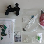 #CDTA #デスクトップアーミー イベントでの購入品を並べてる やそはちさんのろっくんパーカー Ayaさんのトレンチコート キャバレリークラフトさんの ブーツユニット、砲弾 kaennさんのエンブレムシート みや@我道軒さんのハンドマイクとネジ