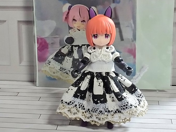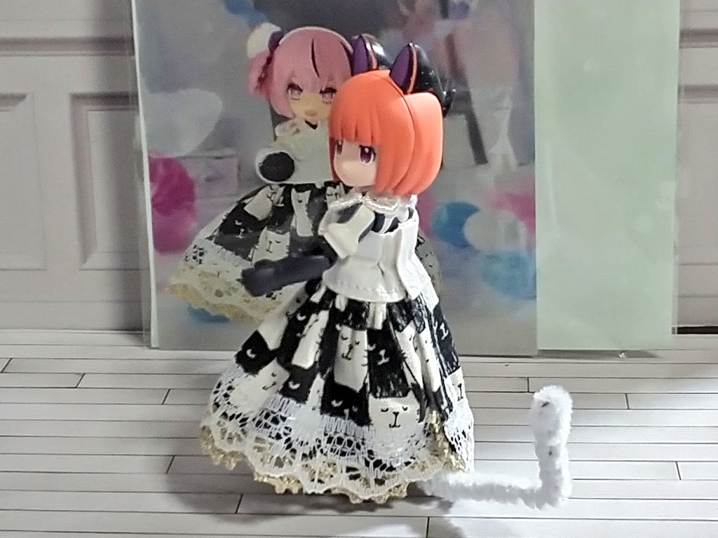 #デスクトップアーミー #CDTA で購入した、えりお。(@eripuchi)さんの"ネコさんドレス"、ウチでは猫繋がりということで、"ゼクト"ちゃんに着てもらうことになりました❗️ モノトーン調のデザインなので、黒ゴシックっぽいメリッサシリーズは似合うと思ったんです。 えりお。さんありがとうございます😂