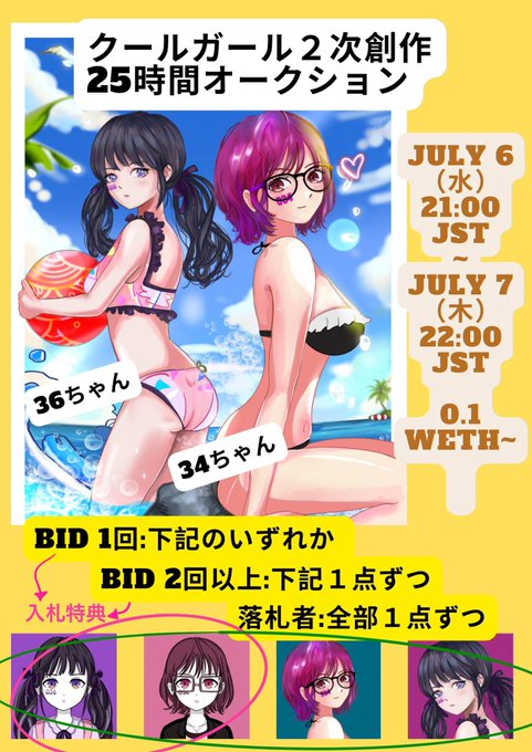 【告知】 CoolGirlサマーコンテストに参加します。034と036を描かせていただきました。 ビーチでワンショットの2人の水着姿いかがですか?🙌🏖 💕07/06 (水) 21:00 💕️0.1 WETH〜 オークション形式 opensea.io/assets/ethereu… #CGサマコン2022 #CoolGirlNFT #NFT @imoto_akira (続き) twitter.com/imoto_akira/st…