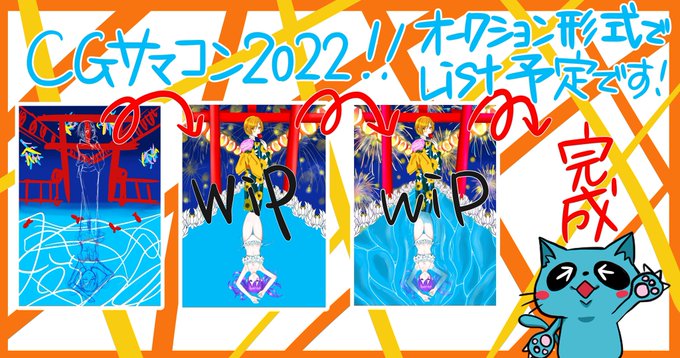 皆さんGMにゃー🐱✨ 今日は朝から色々見せますよー‼️‼️ 全て #CGサマコン2022 尽くし‼️ @imoto_akira さんに感謝✨✨ イラストもメイキング動画も出来ましたー✨時間で言うと制作2週間分ぐらい✨達成感半端ない🤣🖐頑張ったからいいね👍下さいww #nftart #イラスト #NFTartwork #nft twitter.com/cyome_NFT/st…