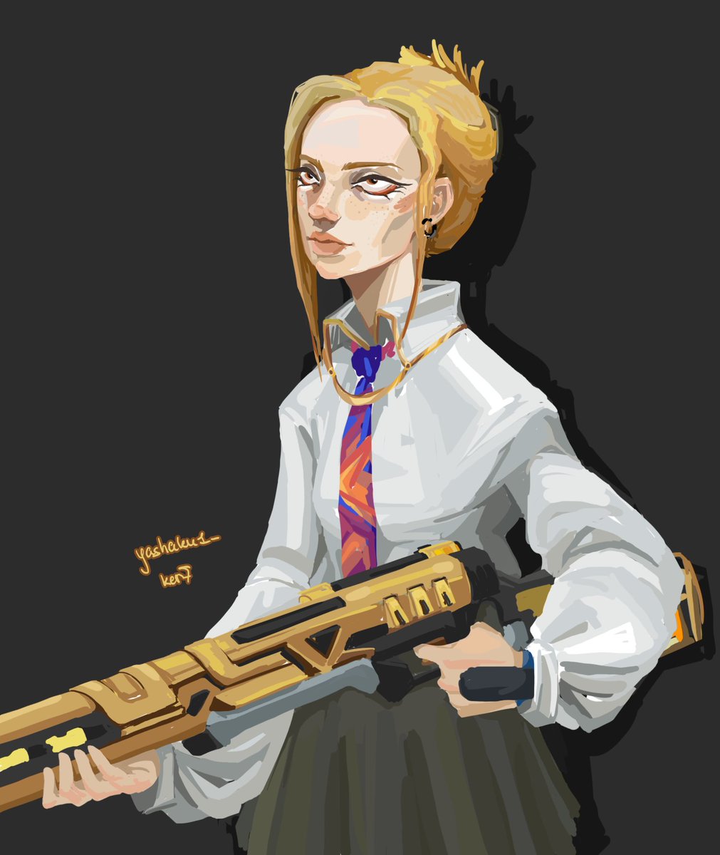 It's me, but dressed as Chamber, buuut in my style xd (you understand) I finished ranked games in Ascendant 1 (E6: A3) and this work is a reward for my efforts! #valorant #valorantart #Chamber