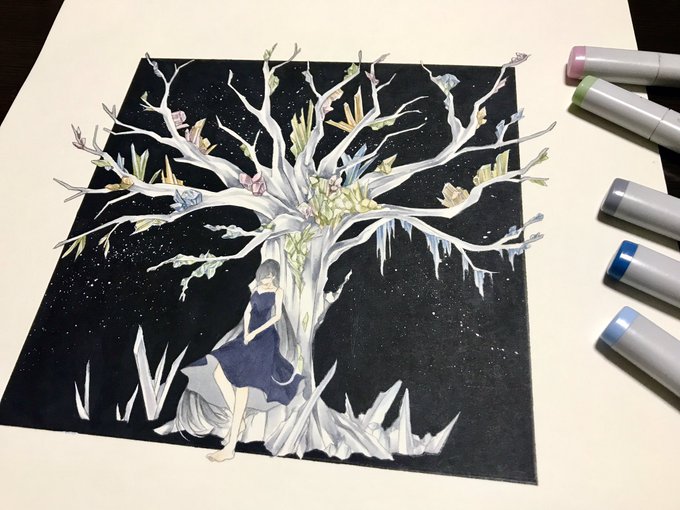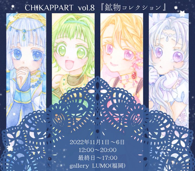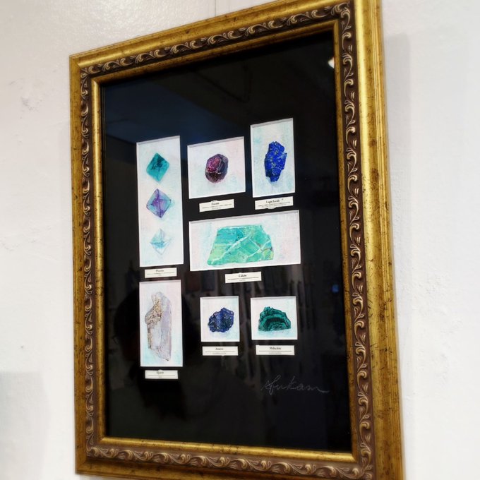 【展示のお知らせ】 #CHIKAPPART さん主催の公募展「鉱物コレクション」に額装2点、小作品3点で参加させていただきます。 メインビジュアル気合い入れて描かせて頂きましたので、ぜひ原画で楽しんで頂けると幸いです☺️新刊も出るよ〜! 会期💎11/1〜6(12〜20時) 会場💎gallery LUMO(福岡)