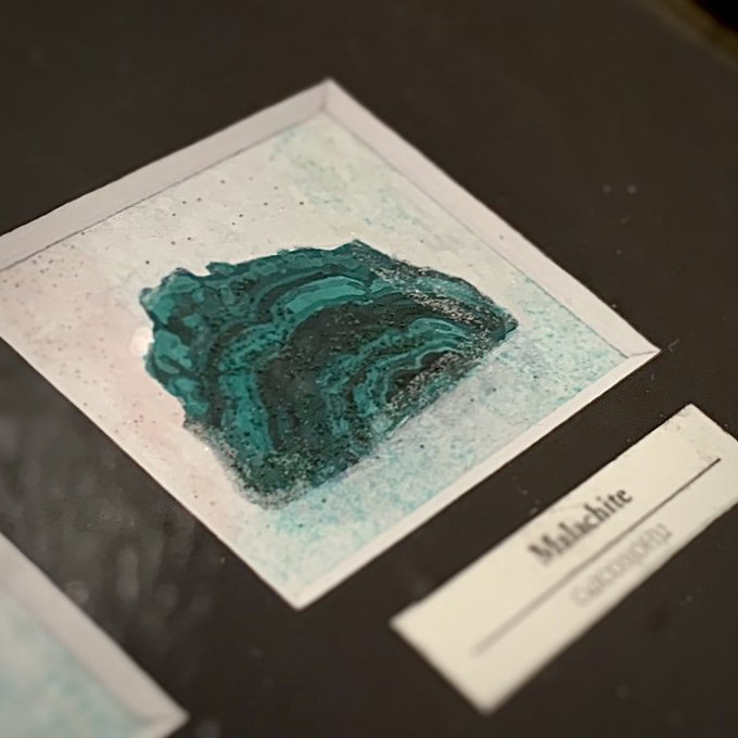 今回のCHIKAPPARTは 💎【鉱物コレクション】💎 このマラカイトの絵は、 一部マラカイト製の絵具を使っています。 あの燕子花図屏風とお揃いです💪 11/1-11/6まで 地下鉄赤坂駅、大濠駅から徒歩10分くらい galleryLUMOさんで開催です! #CHIKAPPART #イラスト #アナログ絵描きさんと繋がりたい