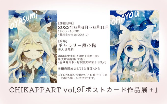 【展示のお知らせ】 久々に地元で展示いたします。今回はポストカード枠なのでちょっと緊張です…2点新作をお出ししますので、是非是非ご覧ください! (公式サイト等はツリーにつなげます) #CHIKAPPART
