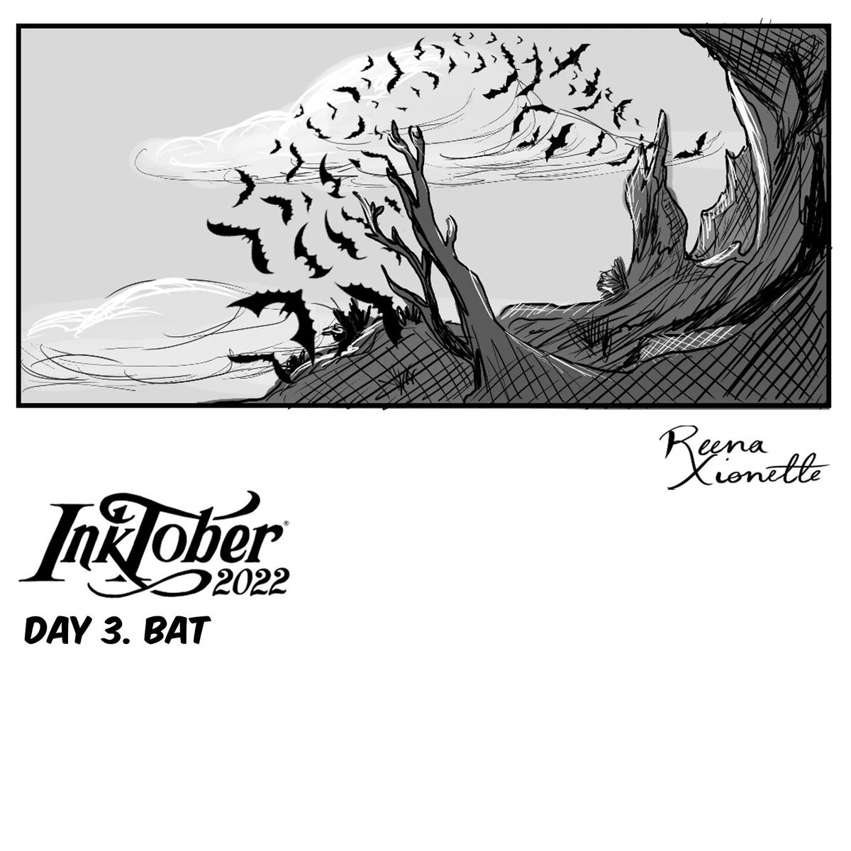 INKTOBER DAY 3!! BAT!! Slide to the next panel~! Enjoy! #inktober #inktober2022 #art #comic #ink #digitalinktober #cintiq #wacom