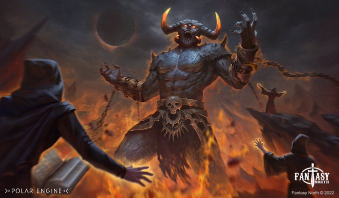 "Aggamon’s Unbinding" First playmat art I made for Fantasy North, really enjoyed the process.😀 Thanks to my ADs @bill_creative & Erick Efata, also @jsraphael57 & @RamzaPsyruART for their help and insightful feedback! #demon #cleric #fantasy #fantasyart #illustration #TCG