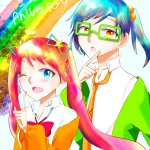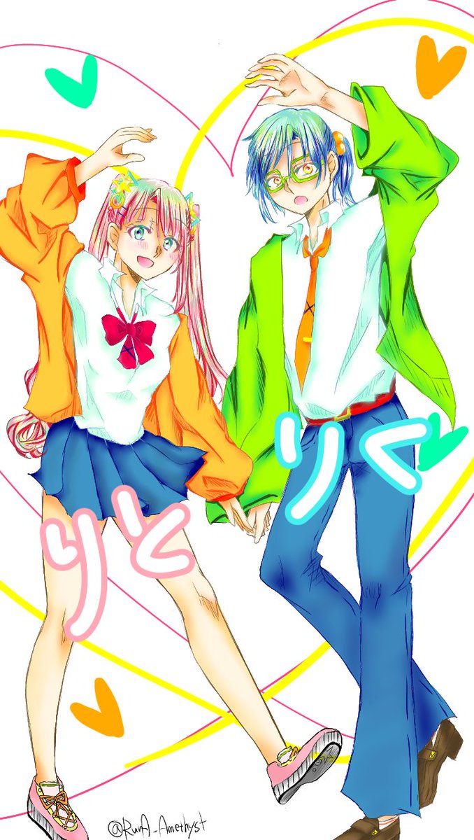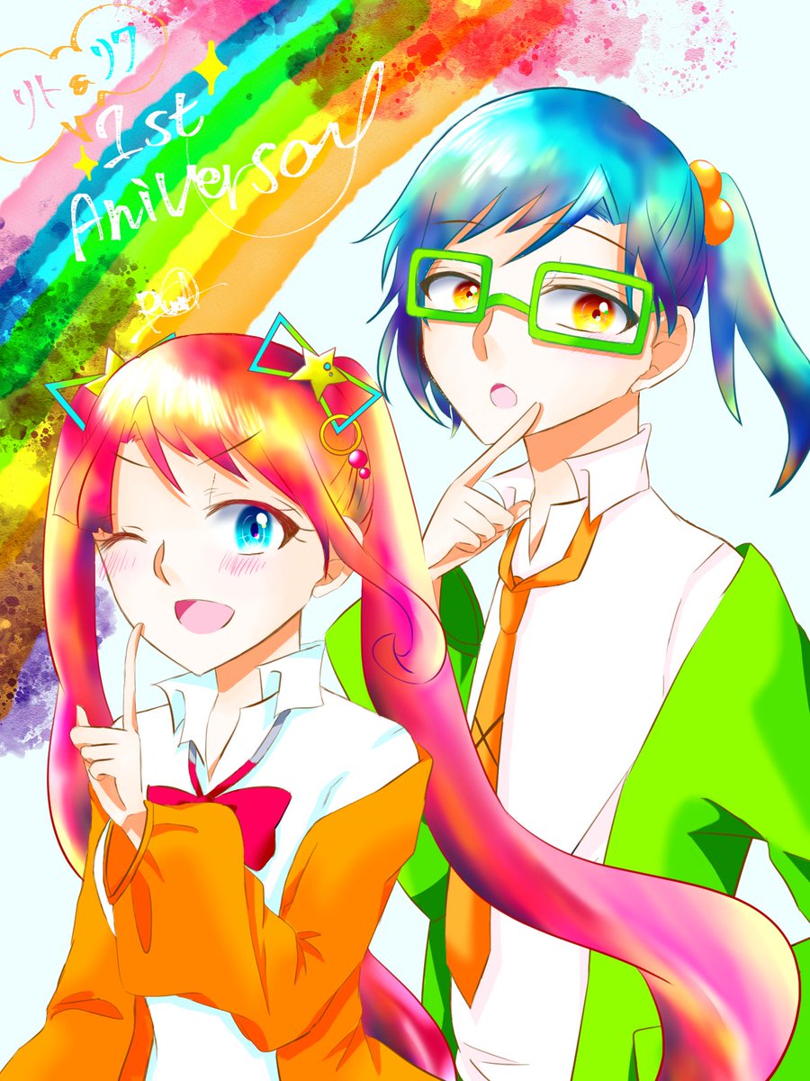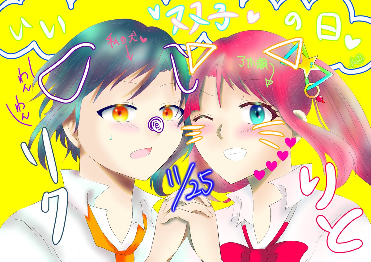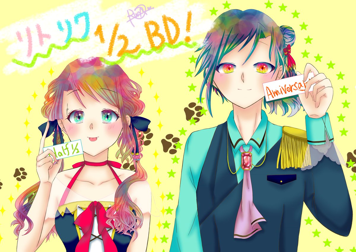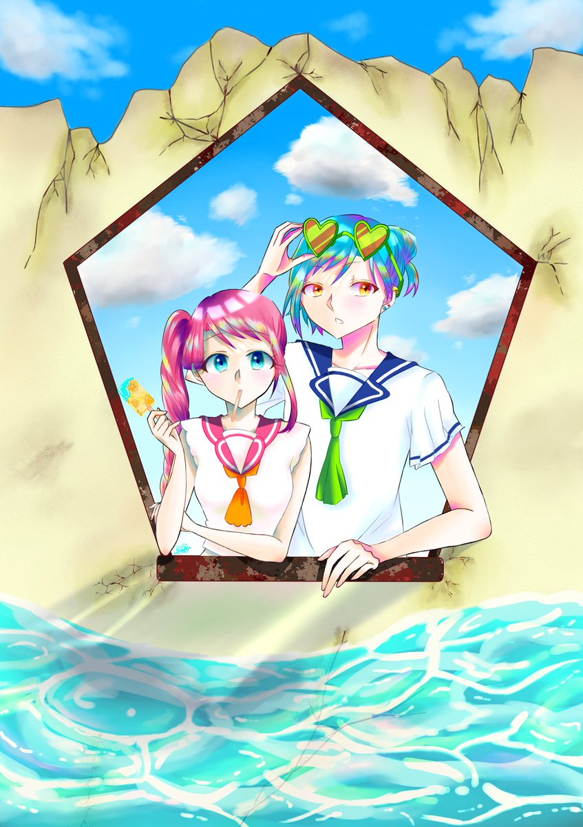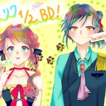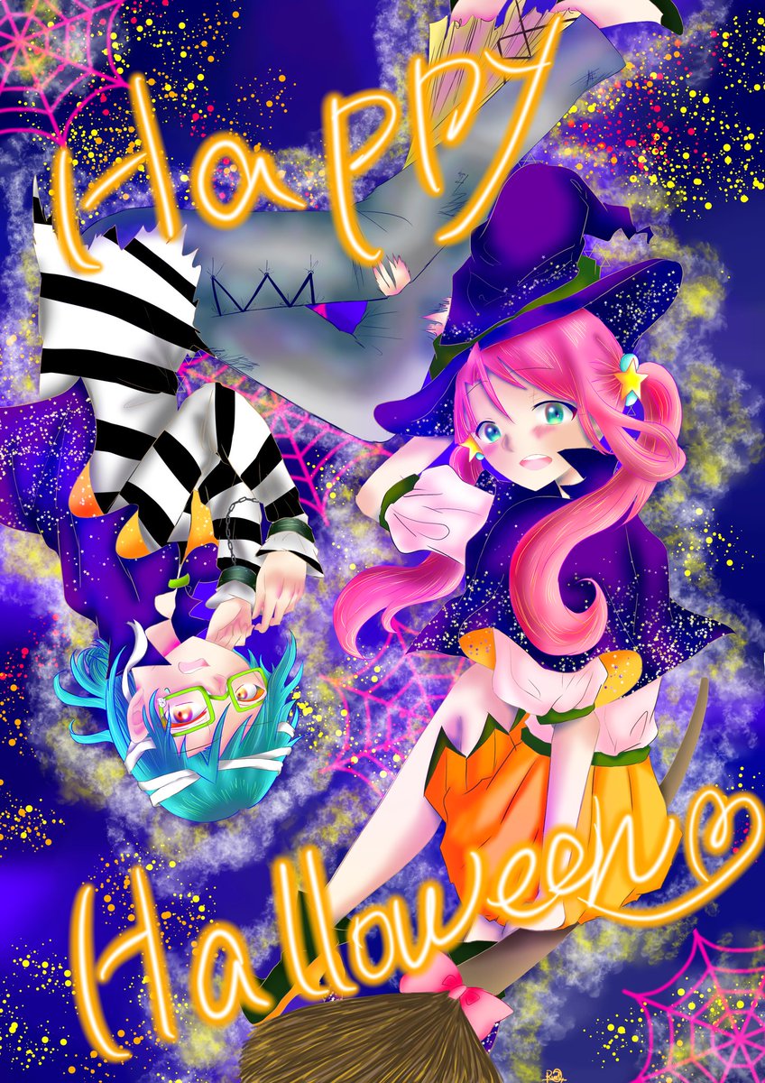 #COLORFUL_2wins #ハロウィンイラスト展示会2022 #ハロウィンイラスト2022 ❤️「ここにカボチャのシール貼れば完璧~!……え、何描いてるの???」 💙「俺のデフォルメの可愛い顔」 ❤️「……」(ドン引きの顔) 💙「マジな顔しなくてもよくない?」 雑誌のピンナップ風にアレンジしてる2人でした☺️