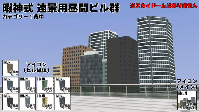 「暇神式 遠景用昼間ビル群」配布開始 以前配布した遠景用夜景みたいな感覚で使える、昼間向けのビル群とビル単体のセットです。 今回のはスカイドーム無しなので、各自で好きなのを用意して下さい。 ux.getuploader.com/himaupl/downlo… #COM3D2 丼COM3D2