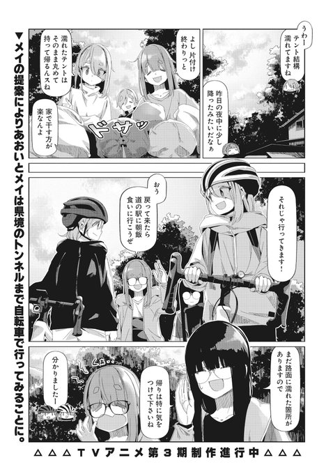 さらに、「ゆるキャン△」第86話「トンネルまであと少し」も先読み追加です!筋肉痛の二人が朝から…。 #COMICFUZ comicfuz.page.link/1EYCsV5NvF3coR…