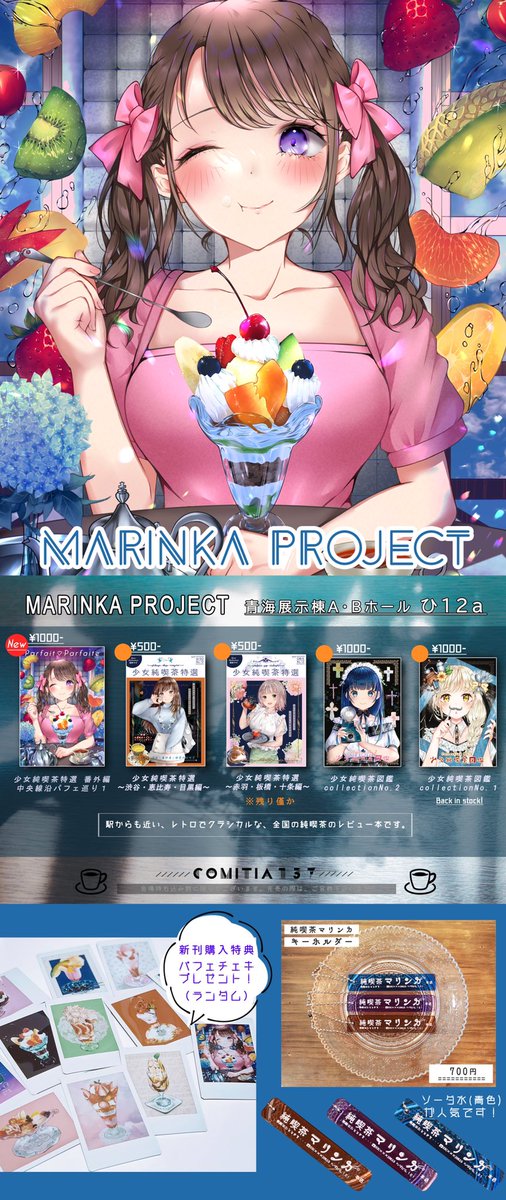 9/20 COMITIA137 ひ12a 「MARINKA PROJECT」 全国の純喫茶巡り&パフェ巡り本です。 明日はよろしくお願いします𓃹 #COMITIA137 #コミティア137