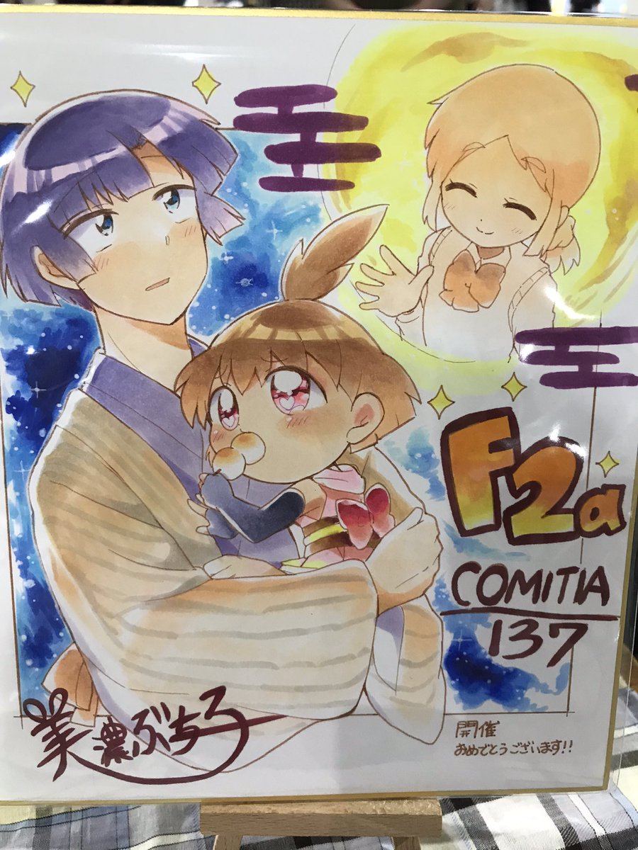憧れの「イベント用描き下ろし色紙」を描いたよ!!🎑やはり大きめのサイズは本当に塗るのがむずかしいけど愛は込めた!今日はよろしくお願いします! #美濃ぶち子アナログ日記 #コミティア #COMITIA137