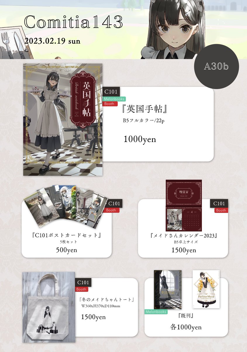 2/19(日) COMITIA143のお品書きです。東4ホール A34a『etoilumiere(エトワルミエール)』でお待ちしております~! #COMITIA143 #COMITIA143お品書き