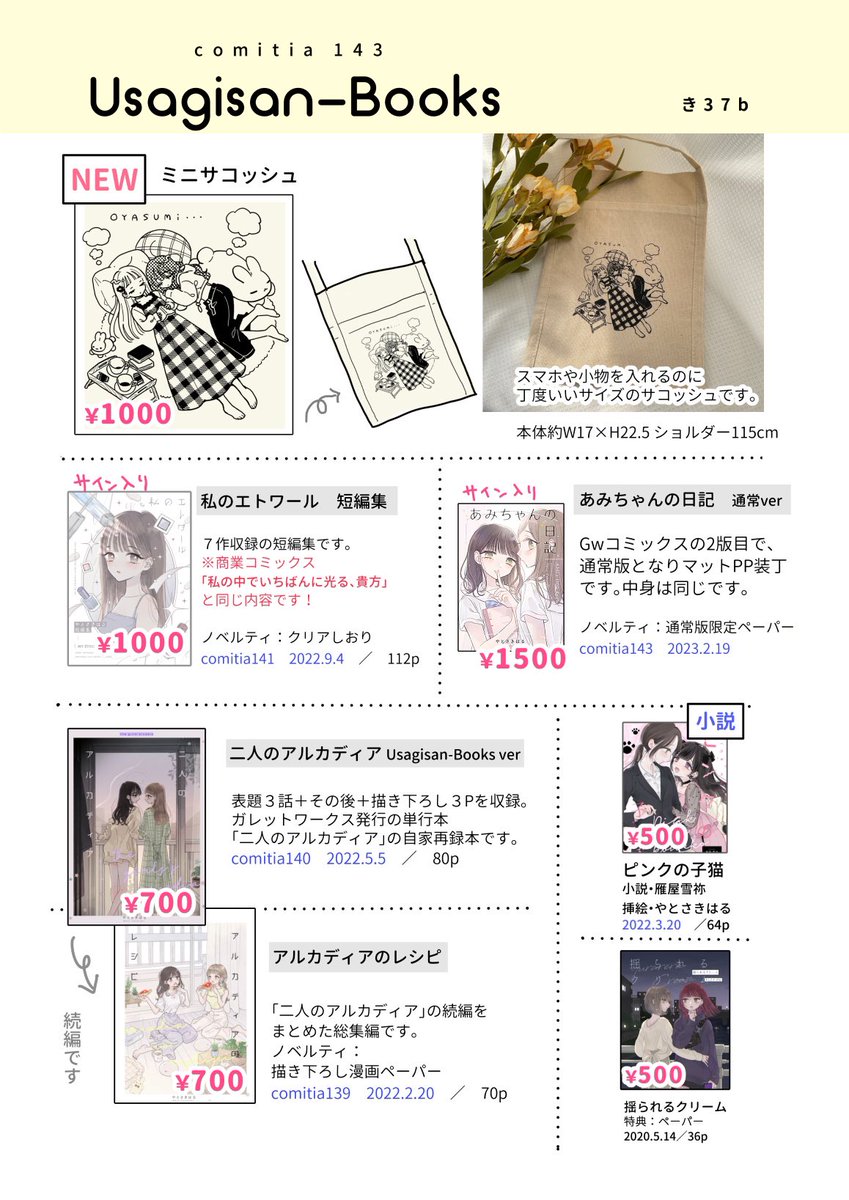 #コミティア143 新刊でます!!!新刊だけ出します!!! SNS非公開イラストも収録。 東4ホール【て06b】にて発売予定です! 後日BOOTHにて通販も予定〜 #COMITIA143お品書き