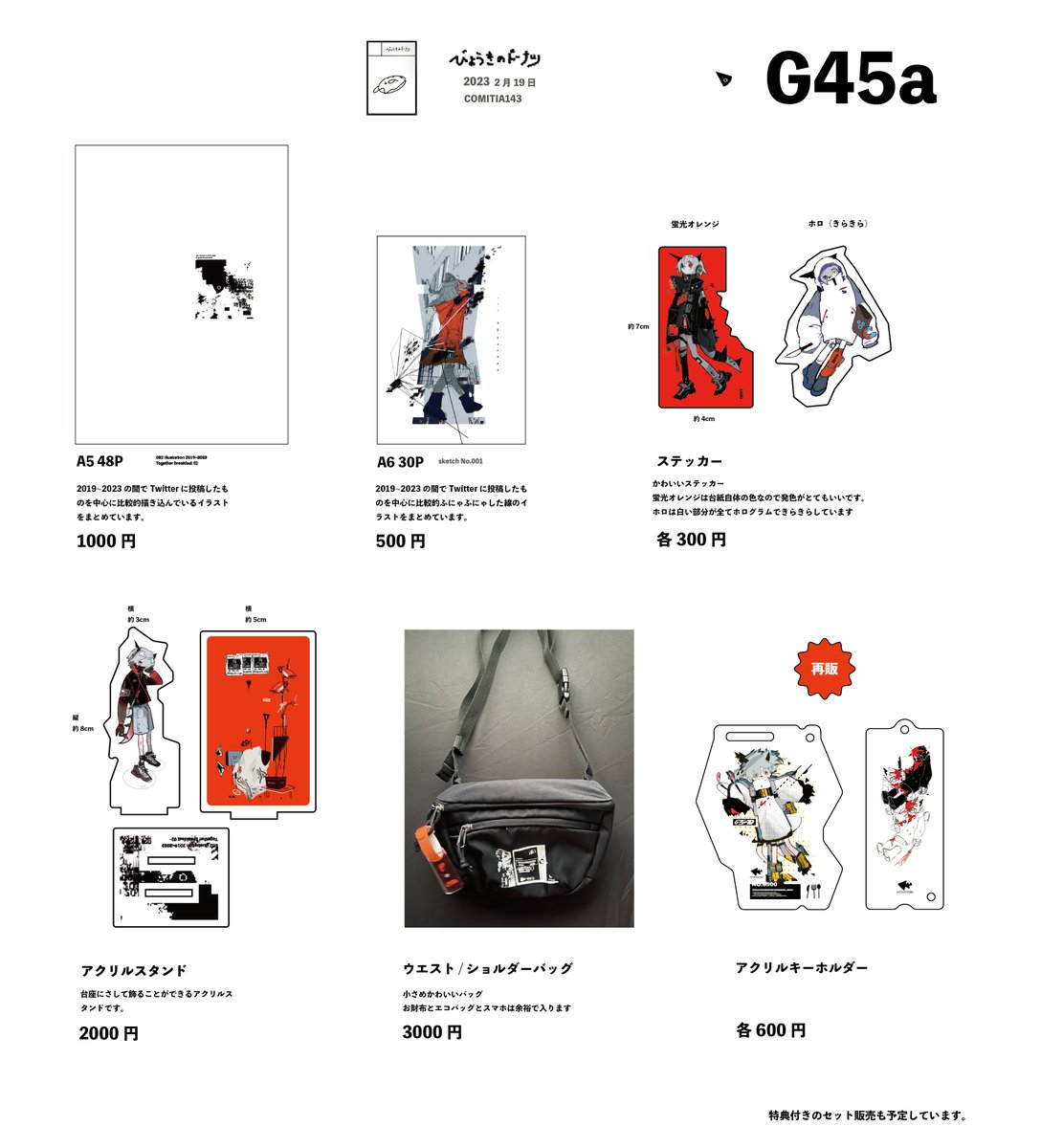🌷#COMITIA143お品書き 🌷 一年分の絵を詰め込んだ画集できました! 新刊セットにはバレンタインチョコ入れます💝 シールシートは透明マットで貼るとめちゃかわいいです〜! 【C48a】にてお待ちしてます。 #コミティア143 #コミティア #COMITIA143