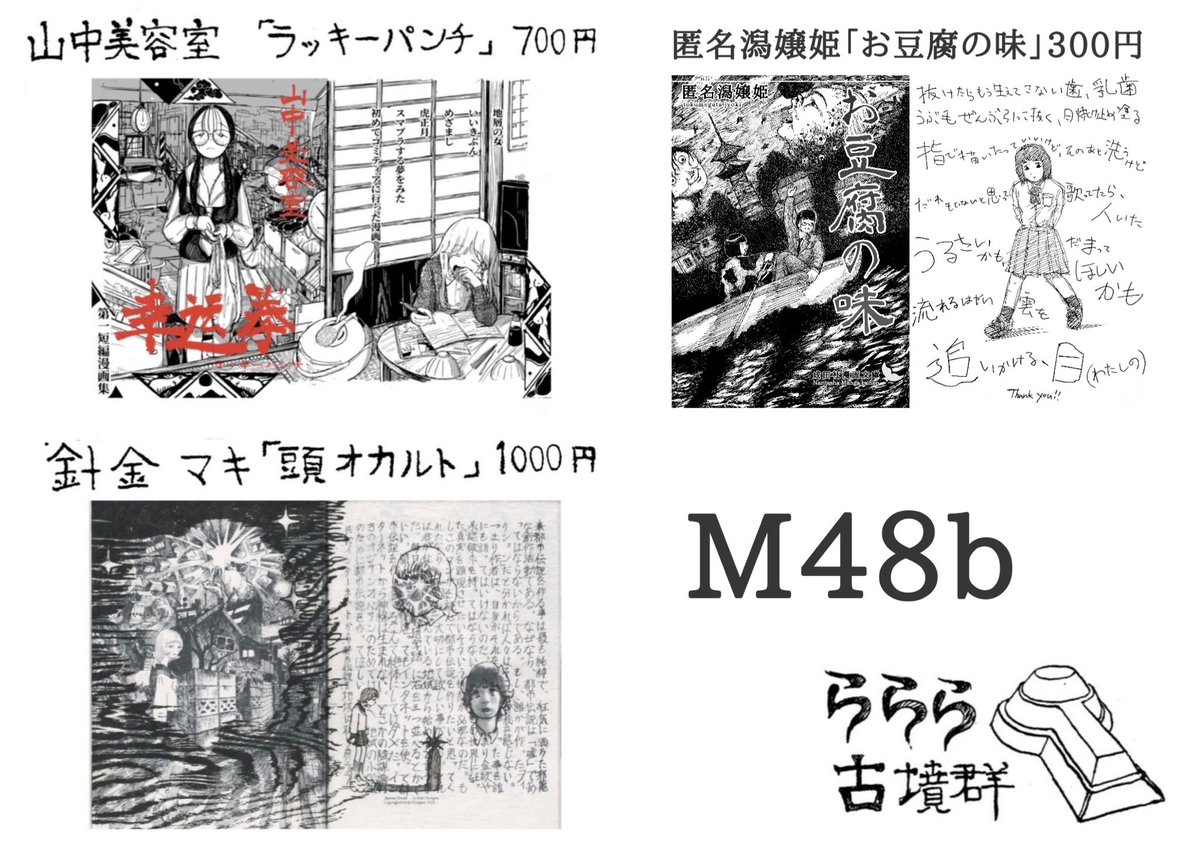 #COMITIA144 お品書きです🦆 ららら古墳群【M48b】 (ハッシュタグ間違ってたのでツイートし直しました!すみません) ブースに並ぶ新刊は、匿名潟嬢姫『お豆腐の味』 ぼくは、『ラッキーパンチ』持っていけるだけ持っていきます。よろしくお願いします! #コミティア144 #COMITIA144お品書き