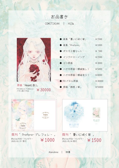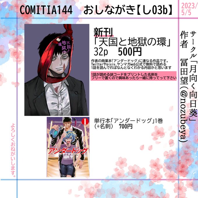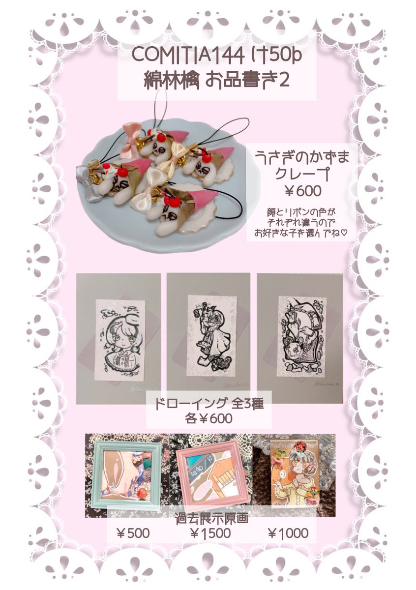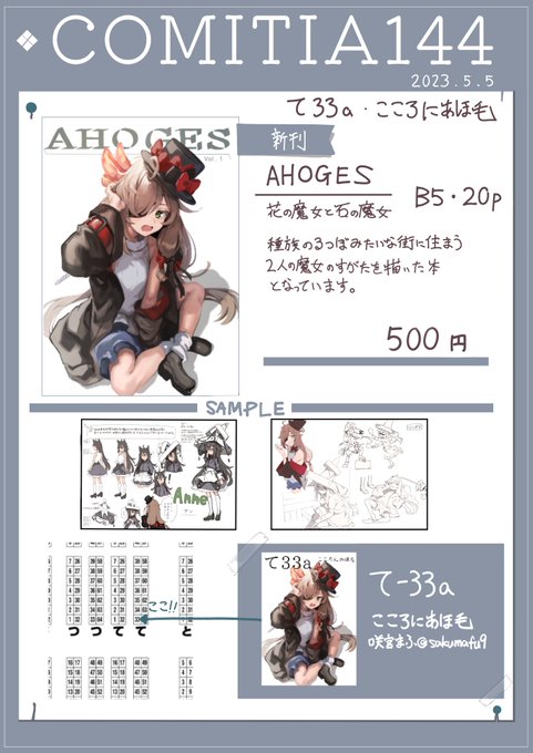 COMITIA144 | 東2H13a 柚璃波さん(@yuzuyuzuriha)と隣接です! 新刊はありませんが、ミニ原画やハガキ原画をいっぱいもっていきます!原画ご購入いただいた方、先着5名様迄スケブもお受けします。 当日よろしくお願いします! #COMITIA144お品書き #COMITIA144 #コミティア144