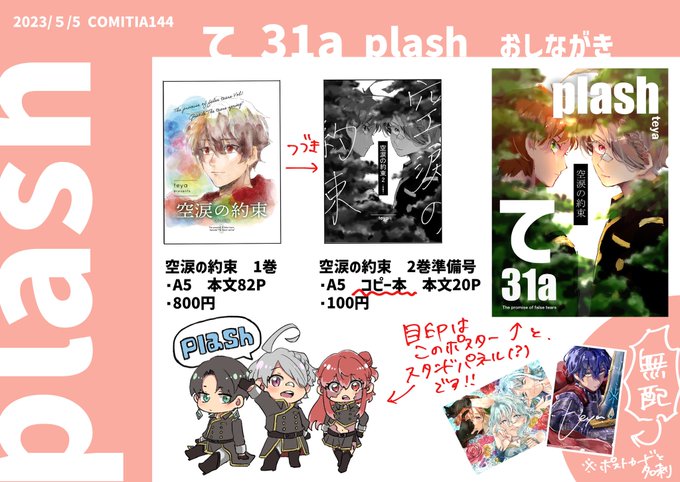 5/5コミティアのお品書きですーーーーー!!! 2月コミティア合わせで通販した1巻と 間に合わなかった2巻準備号という名のコピ本が並ぶ予定です。 冒頭の1話分の本です。 無配はポスカと名刺です! よろしくお願いしますーー! #COMITIA144 #コミティア144 #COMITIA144お品書き