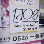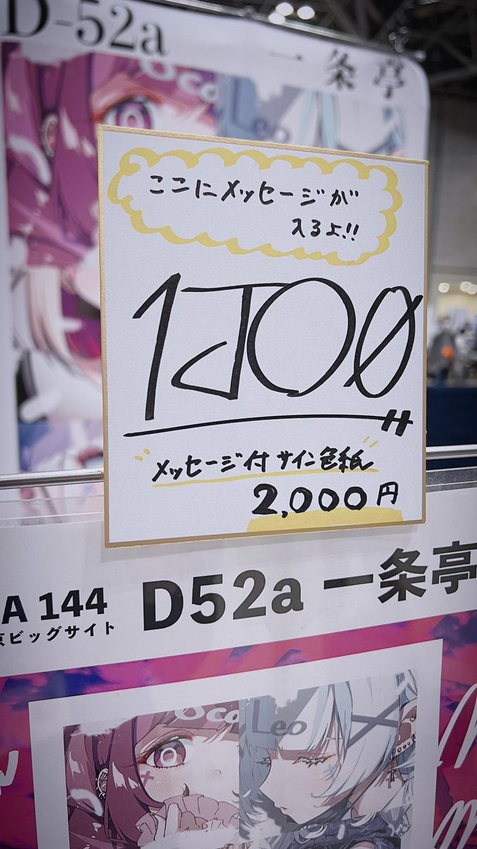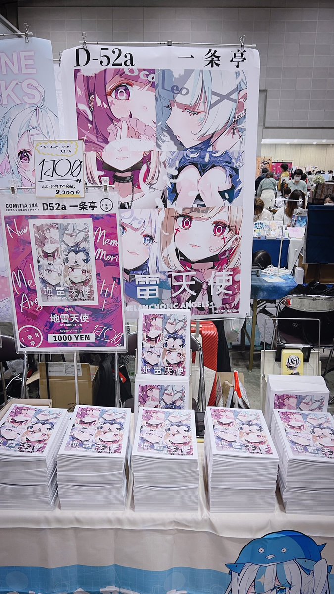 本日のコミティア144、スペース設営完了しました!✨🥳 🆕追加で「会場限定メッセージ付きサイン入りミニ色紙」の頒布も決定しました! 会場来られる方はぜひ遊びに来てください!✨😆 スペースD52a「一条亭」でお待ちしております!😉💛 #COMITIA144お品書き