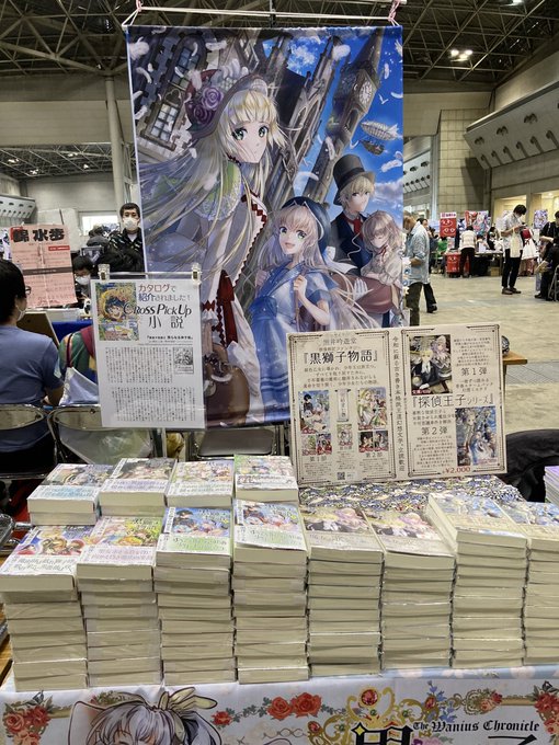 #COMITIA144 設営完了しました。 少年王が国を取り戻す群像戦記『黒獅子物語』完結全7巻ほか新刊は美青年と女装させられ魔法少年のスチームパンク幻想ミステリ、一冊読切シリーズ『探偵王子とフォルトゥーネ』改訂新装版。直筆色紙も。 幻想文学なら黒井吟遊堂 【そ26b】 ▼#COMITIA144お品書き ▼ twitter.com/961_cocoanna/s…