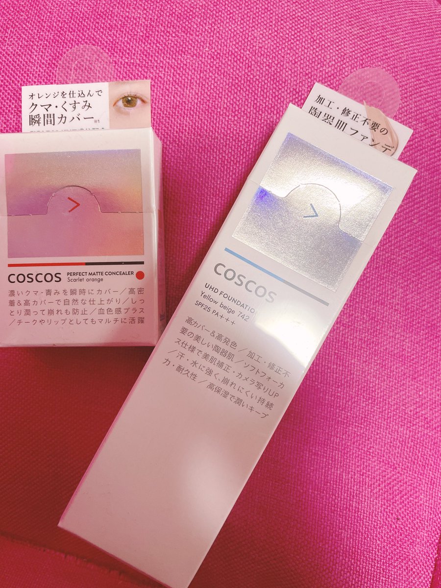 🌸コスメ紹介🌸 #COSCOSリニューアル <パーフェクトマットコンシーラー> 旧に比べて少しピンク味が増した気がする!目の下のクマはよく消えます!これはチークに使っても可愛いかも☺️✨ <UHDファンデーション742> カバー力が高く伸びが良い。 CICA配合は嬉しい😊 #coscosmakeup @coscos_makeup