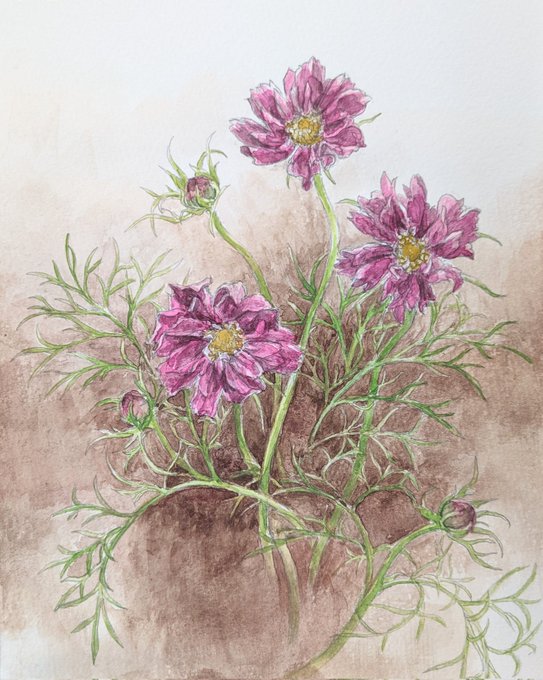 When The Cosmos Blooms. #peachigart #hijaboc #flower #cosmos #sketch #artidn #artistsontwitter #spring #zonakaryaid #artmoots