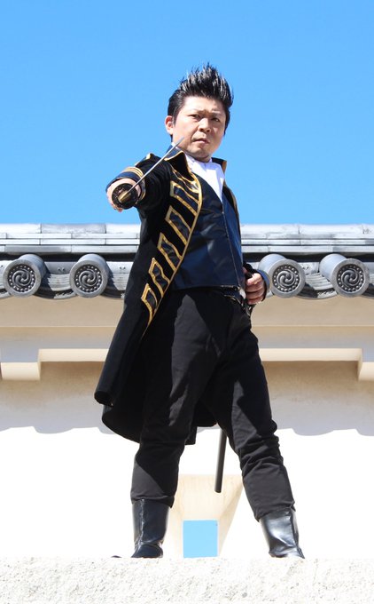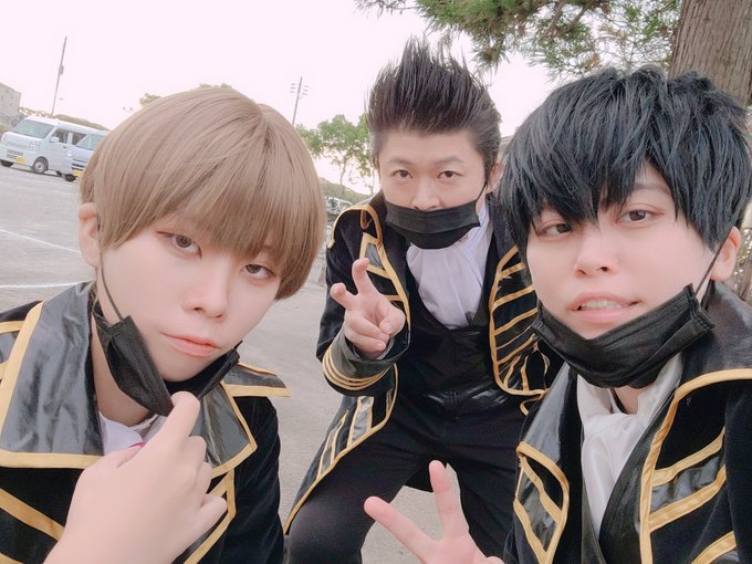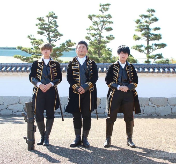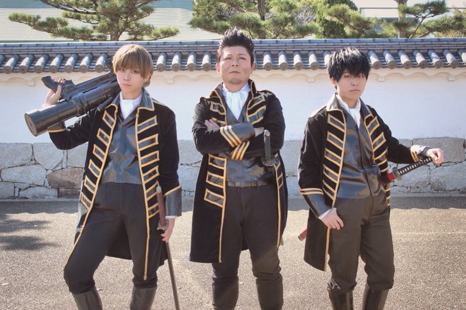 ⚠️実i写cosplay⚠️ ⚠️ロケ地でとっつぁんのマネ⚠️ 「いらっしゃいませ~×3」 トシ(@chomo073) 総悟(@t_214_h) 📷️ (@2525_futaba) #colorplayer #CP赤穂20211107