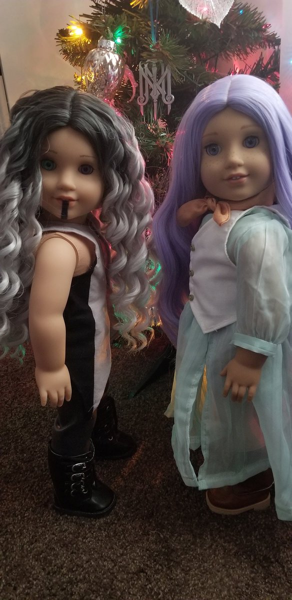 I meant to share this on Thursday for #CR7Years but forgot! Here's probably my two favorite american girl dolls in my collection, Yasha and Imogen! 🥰 Yasha and imogen's outfit were commissioned, imogen i customized myself. 💙💜 #criticalrolefanart Next on the list is Keyleth!