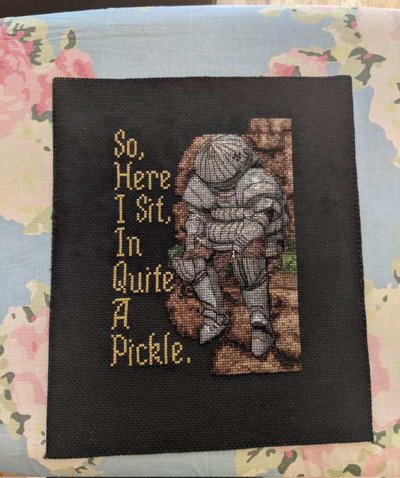I decided to combine my new love of Dark Souls with my old love of cross stitch. Siegmeyer is just the best and I can't wait to put him on my wall after 4 weeks of very hard work. #DarkSouls #crossstitch #fanart