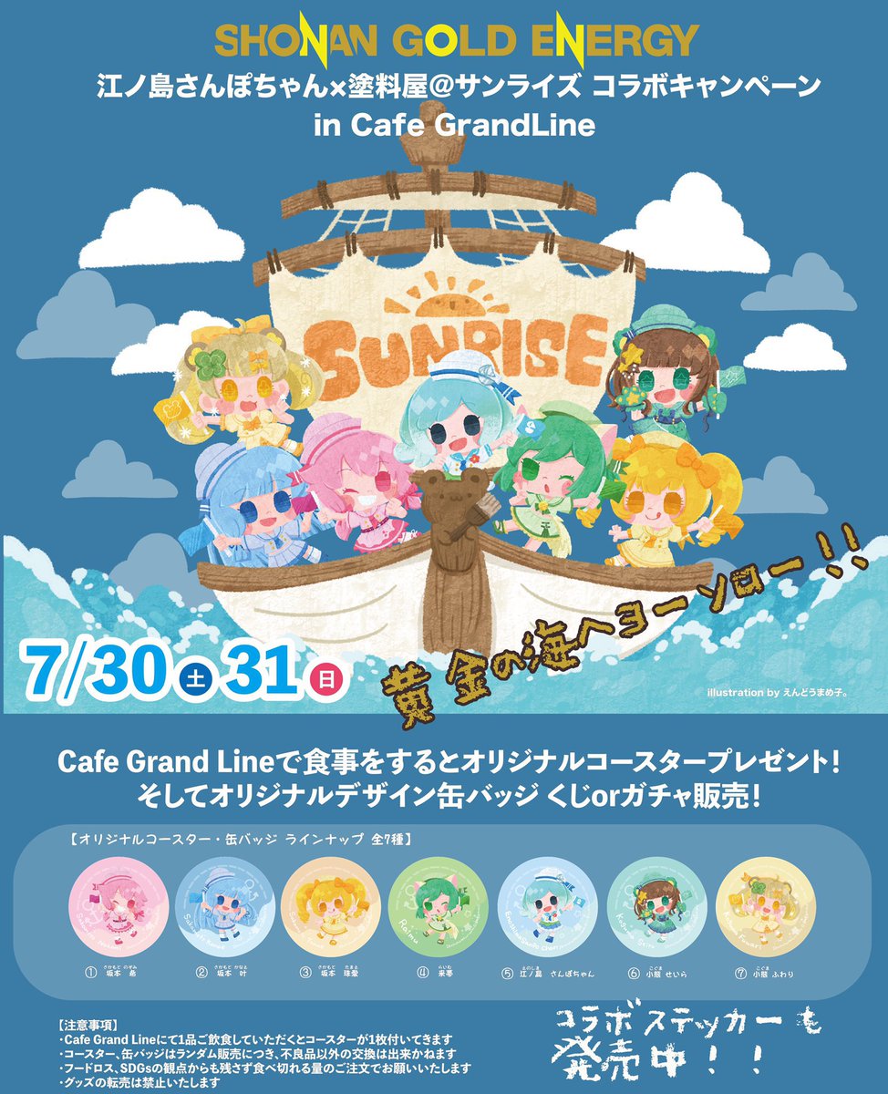 おはようございます 本日は江ノ島にてイベント開催 twitter.com/sunrisetoryou/… #塗料屋サンライズ #江ノ島コラボ #江ノ島コラボFA #江ノ島さんぽちゃん #CafeGrandLine 完成が当日の朝になっちまったい😅 さんぽちゃんが手にしているのは ロールさん(@roll_interconch)が描かれたものです