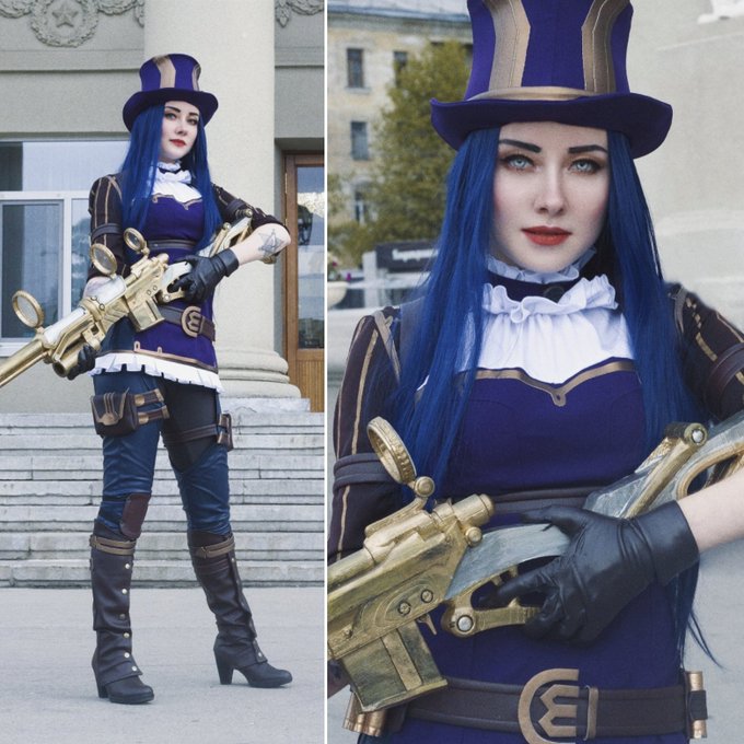 caitlyn, why are you blue? cait: @morninggmist 📷: @2f3ral_ #caitlyncosplay #caitlynkiramman #arcanecosplay